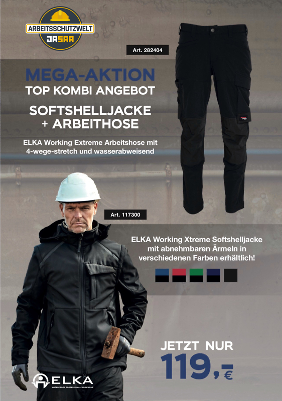 Gemeinsam mit ELKA haben wir aktuell ein starkes Kombi-Angebot für hochwertige Arbeitskleidung für euch.